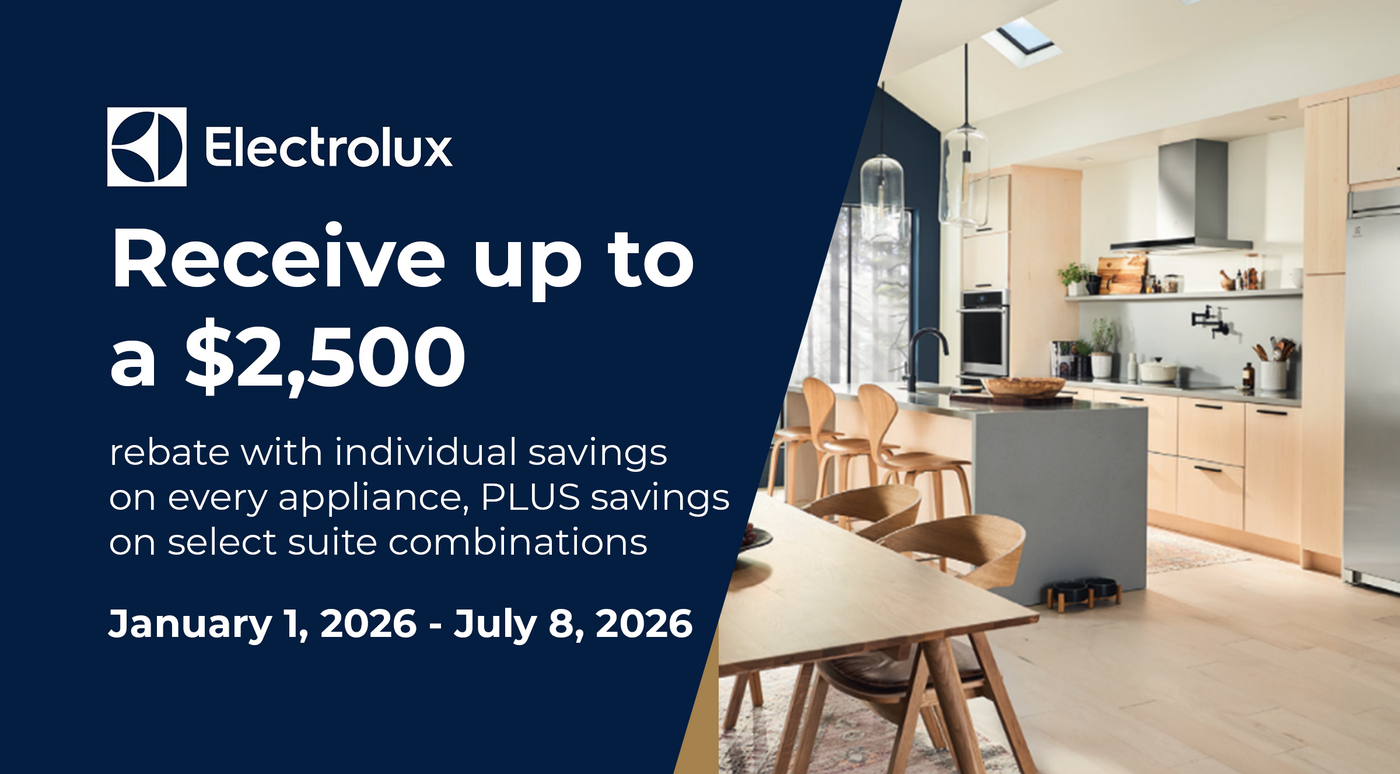 Receive up to $850 with the purchase of select Electrolux laundry and/or Frigidaire appliances.