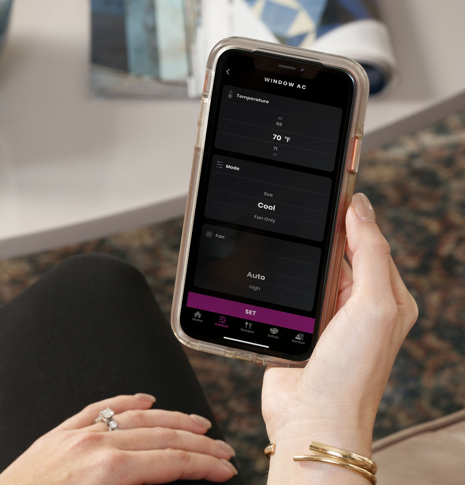 (BR)(B)Cools Medium Rooms(/B)(P)8,000 BTU cooling capacity offers maximum comfort in rooms up to 350 square feet(/P)(BR)(B)Built-In WiFi(/B)(P)Use the SmartHQ app to control and monitor this WiFi enabled smart air conditioner from anywhere, giving you connected peace of mind(/P)(BR)(B)Maximum Comfort Cool(/B)(P)Three cooling settings and fan speeds provide total flexibility with optimal home comfort and air conditioner efficiency(/P)(BR)(B)Voice Control(/B)(P)Use voice commands to control the unit after connecting it to a smart speaker like Amazon Alexa or Google Assistant(/P)(BR)(B)Energy Reporting(/B)(P)Monitor air conditioner energy consumption with reports that show how much you've used, so you can maximize savings and enjoy a truly connected performance(/P)(BR)(B)Geolocation(/B)(P)Geofence technology pinpoints your smartphone location then automatically adjusts the smart air conditioner settings for when you're home(/P)(BR)(B)Eco Mode(/B)(P)The air conditioner Eco Mode automatical