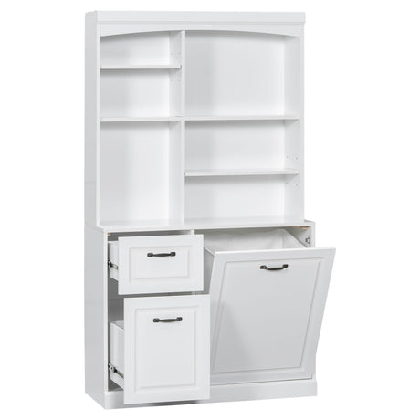 Bathroom Vanity Cabinet Only, 6 Soft Close Drawers & Double Doors With 2 Tier Shelves - White