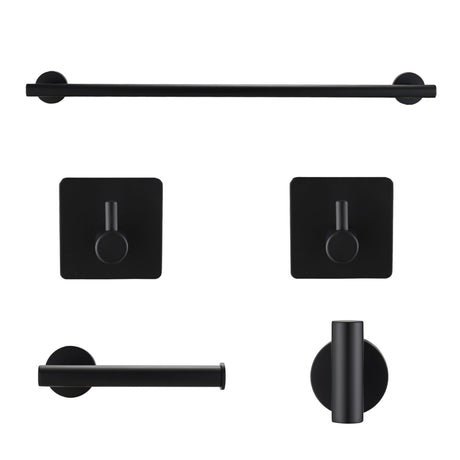Bathroom Hardware Set Stainless Steel With Towel Bar, Paper Holder, And Hooks - Matte Black