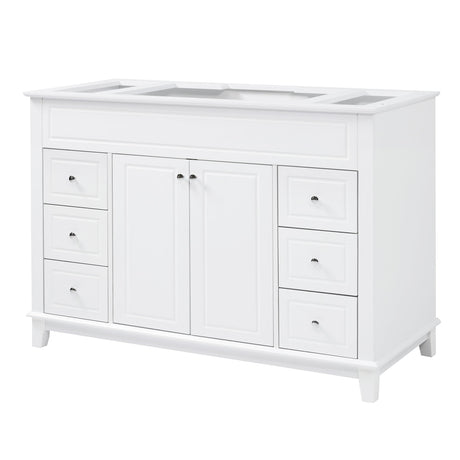 Bathroom Vanity Cabinet Only, 3 Drawers & 4 Doors With Double Layer Shelves - White