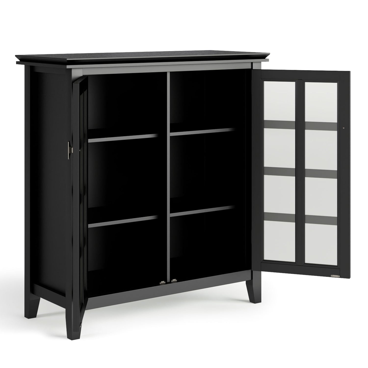 • Features 2 tempered glass doors that open to four adjustable shelves for versatile storage