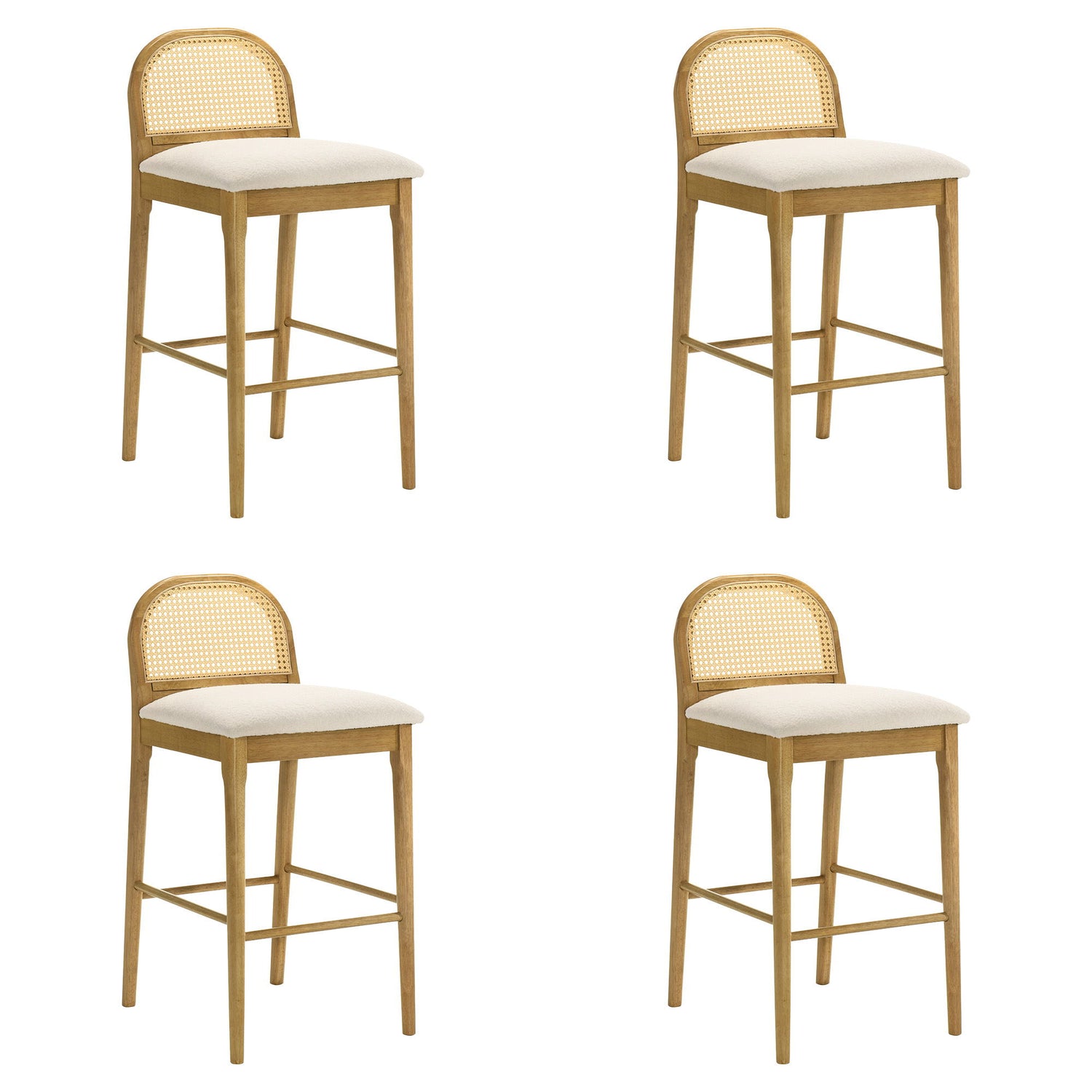 Lucio - Modern Farmhouse Wood Bar Height Kitchen Bar Stool (Set of 4) - Amber Glow Finish With White Boucle Fabric Upholstered Seat
