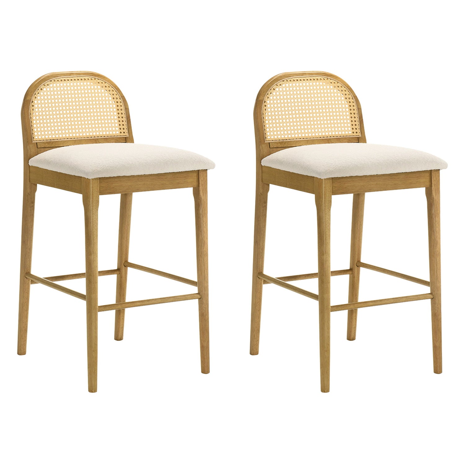 Lucio - Modern Farmhouse Wood Bar Height Kitchen Bar Stool (Set of 2) - Amber Glow Finish With White Boucle Fabric Upholstered Seat