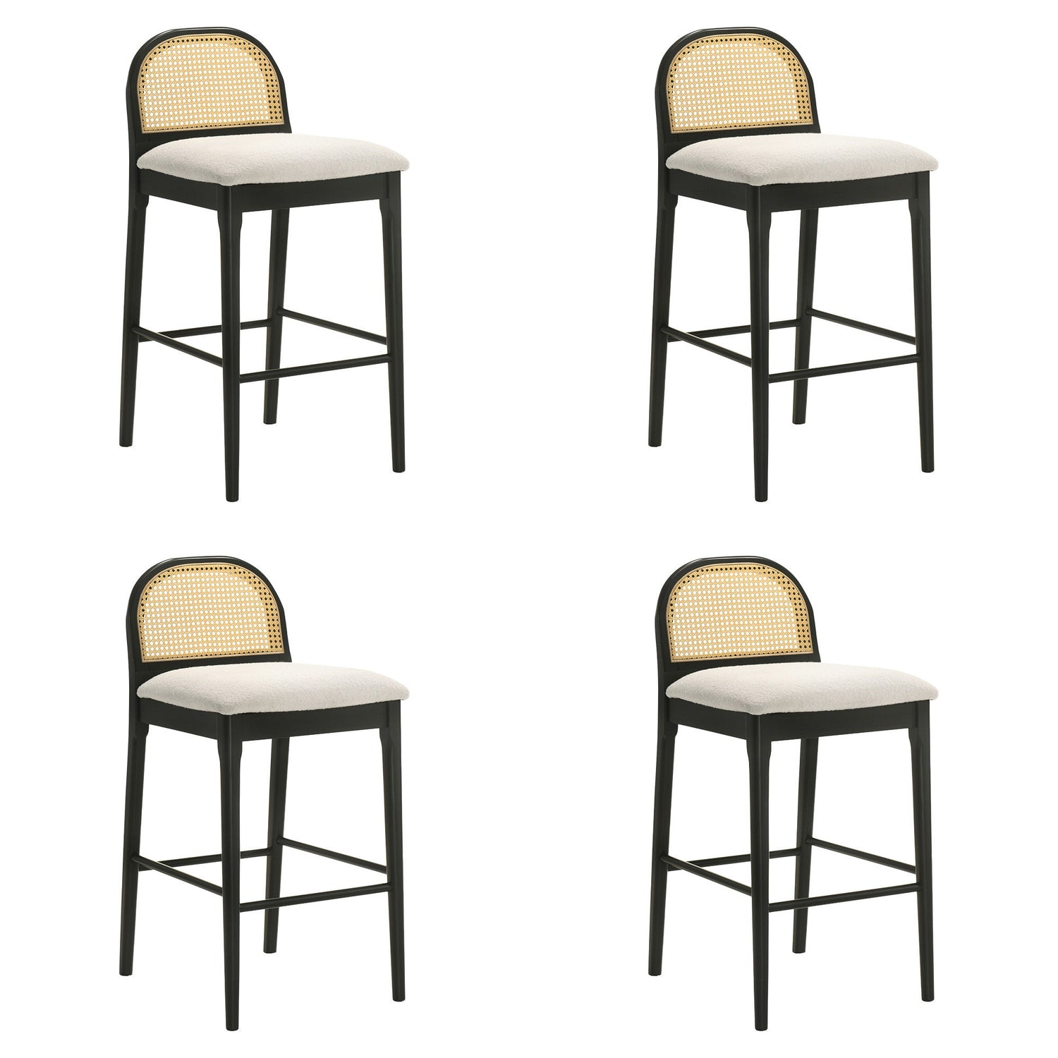 Lucio - Modern Farmhouse Wood Bar Height Kitchen Bar Stool (Set of 4) - Black Finish With White Boucle Fabric Upholstered Seat