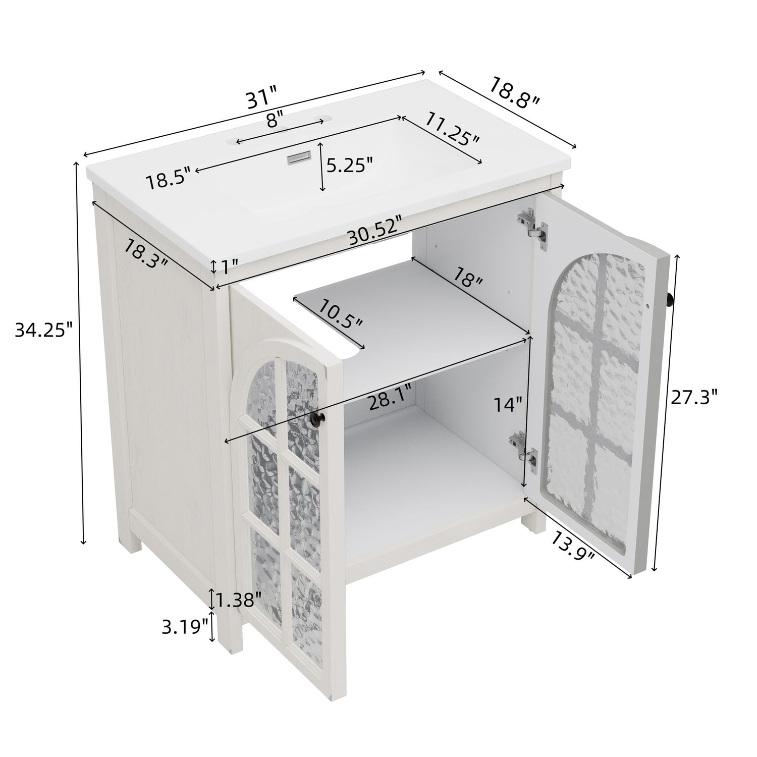 Bathroom Vanity With Sink, Soft Closing Doors - Antique White