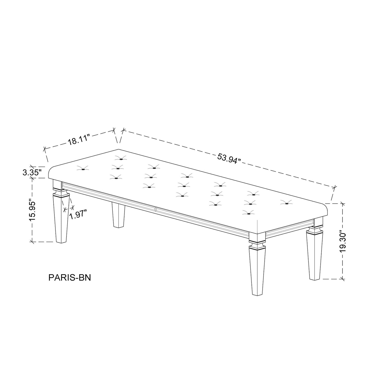 53.94"W x 18.1"D x 19.3"H - 32.0 lb