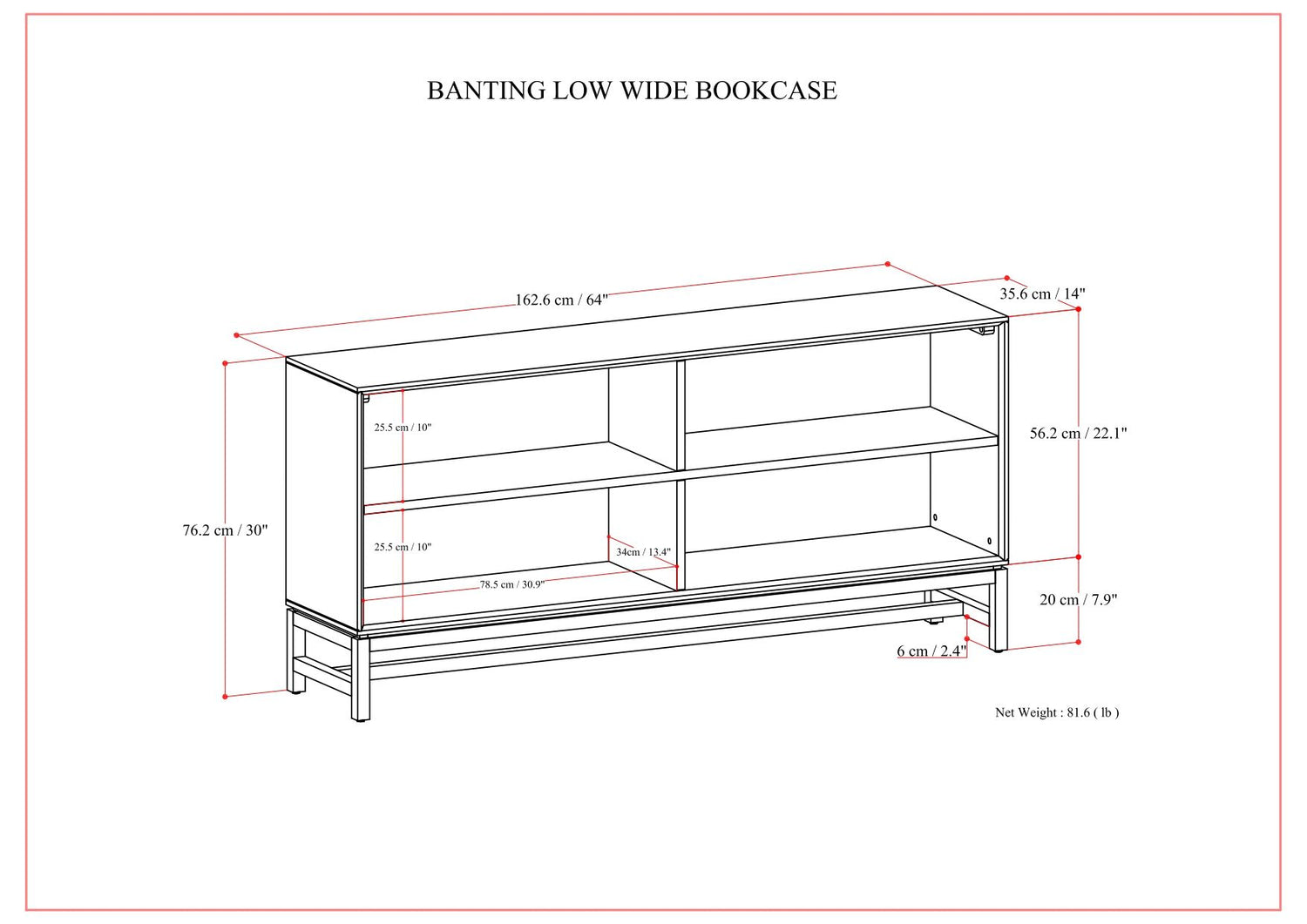 - DIMENSIONS: 14" D x 64" W x 30" H