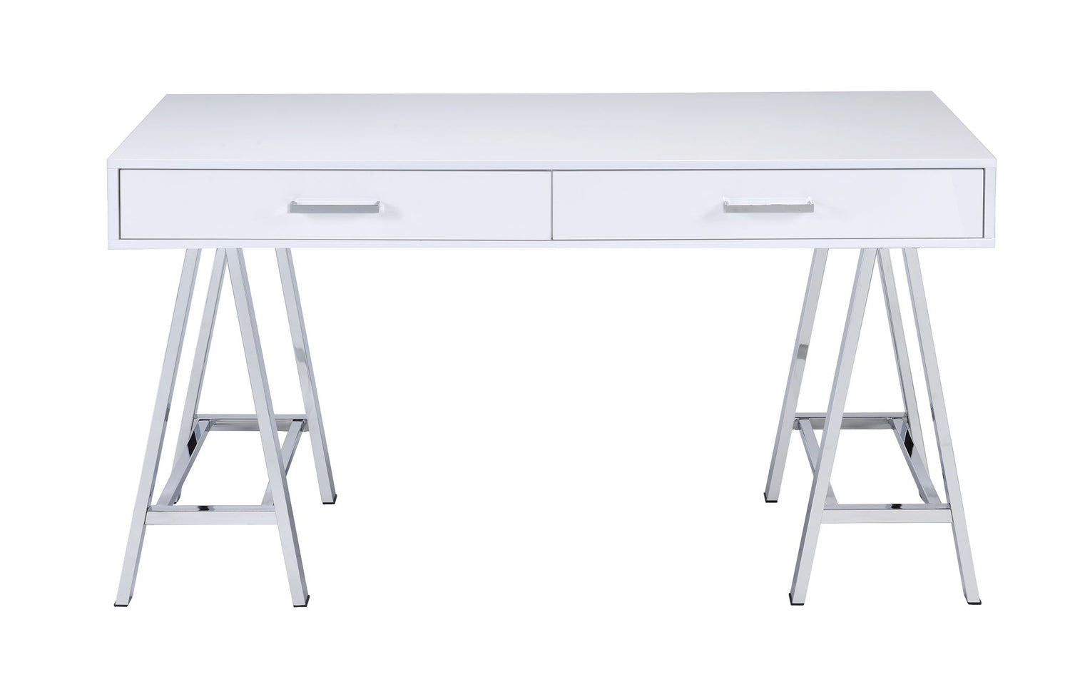Coleen - High Gloss Writing Desk With USB - Chrome / White
