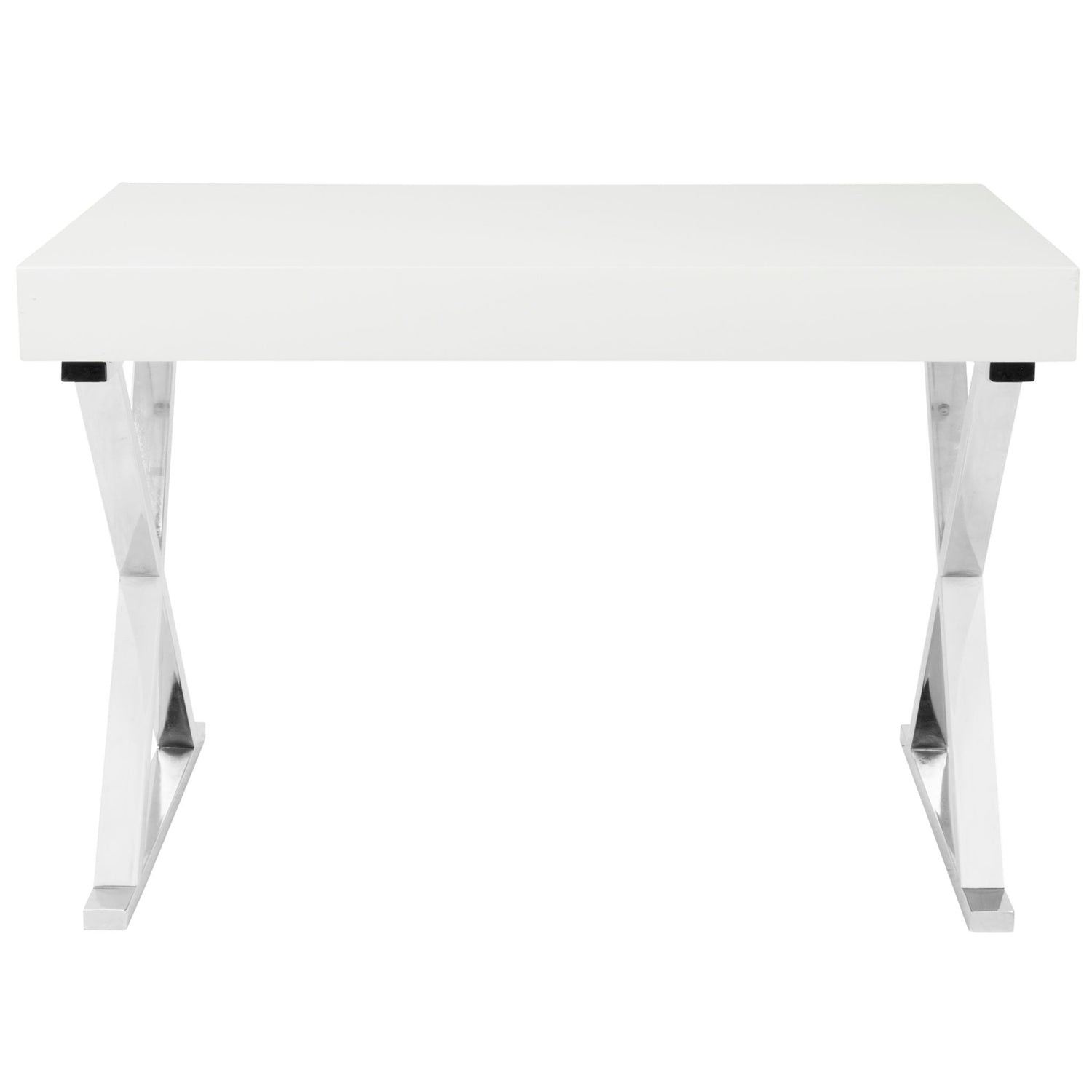 - Stylish Support: The desk is supported by chrome-finished X-shaped legs, which not only provide stability but also add a contemporary and stylish appeal to your interior decor.