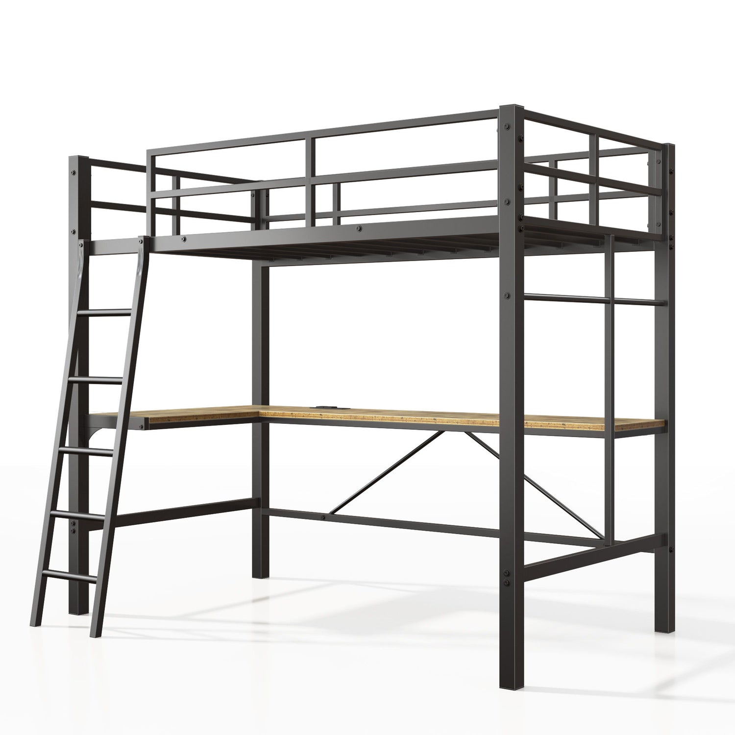 Twin Metal Loft Bed With L - Shaped Desk, Charging Station Loft Bed Frame Twin Size, Safety Guard & Ladder, No Box Spring Needed - Black is backordered and will ship as soon as it is back in stock.