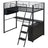 Full Size & Loft Bed With L-Shaped Desk And Shelves - Black