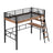 Full Size Loft Bed With Staircase, Built In Desk And Shelves And Sleeping Surface - Black