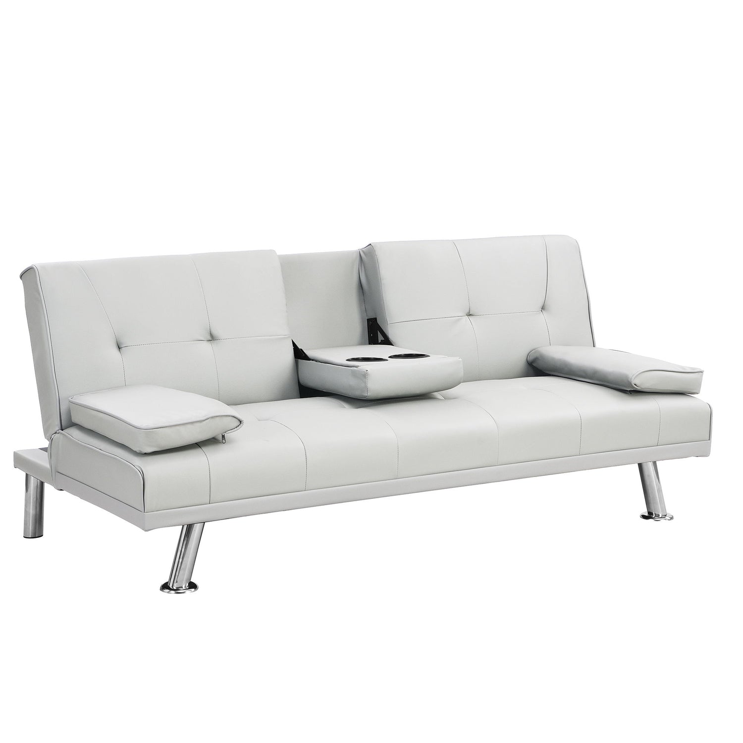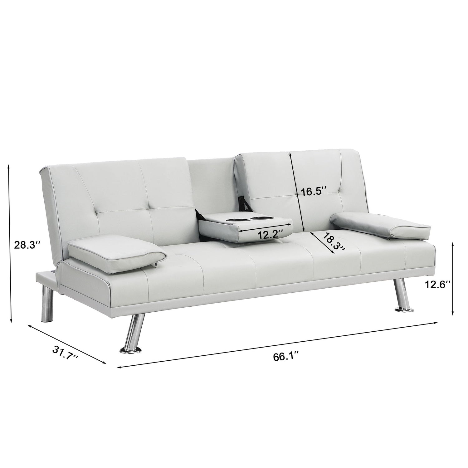 Futon Sofa Bed With Armrest Two Holders Wood Frame, Stainless Leg - White is backordered and will ship as soon as it is back in stock.