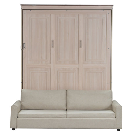 Queen Size Murphy Bed With Sofa And LED - Beige