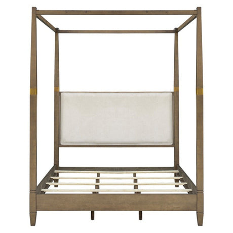 Queen Canopy Bed Frame With Upholstered Headboard - Brown