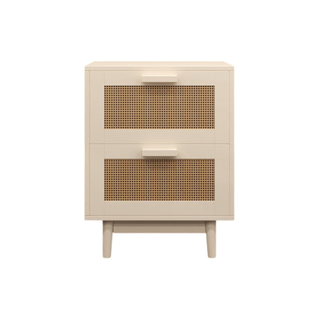 Nightstand With 2 Drawers, Storage Side Table For Bedroom - Antique Natural / Rattan