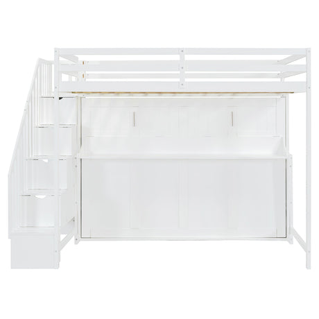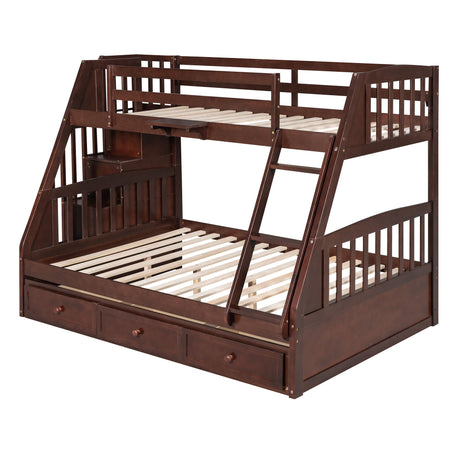 Stairway Bunk Bed With Storage And Guard Rail For Bedroom