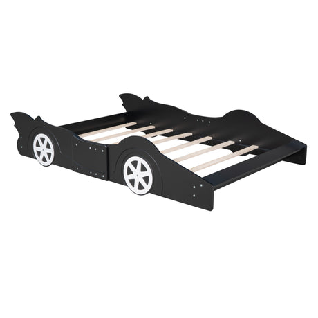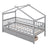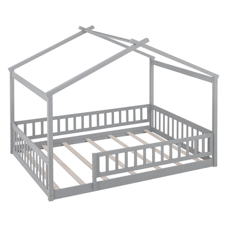 Wood House-Shaped Floor Bed With Fence, Guardrails