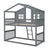 House Bunk Bed With Roof, Window, Window Box, Door, With Safety Guardrails And Ladder