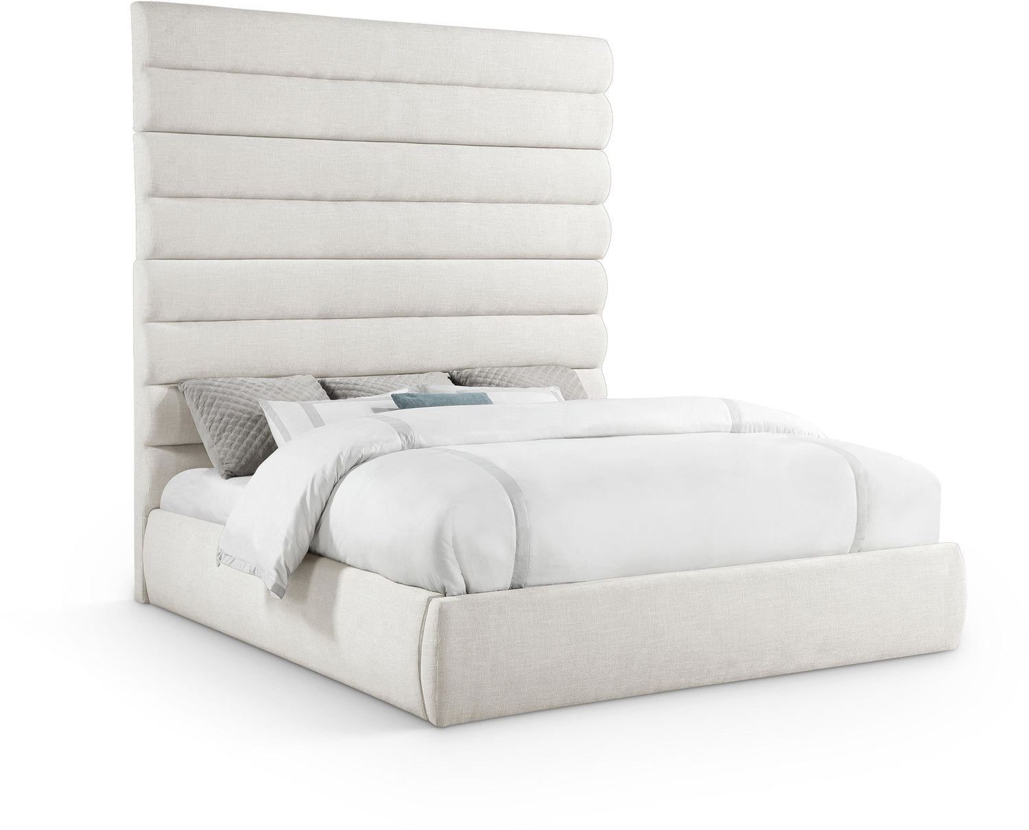 Adam - Linen Fabric King Bed With 89" Headboard - Cream