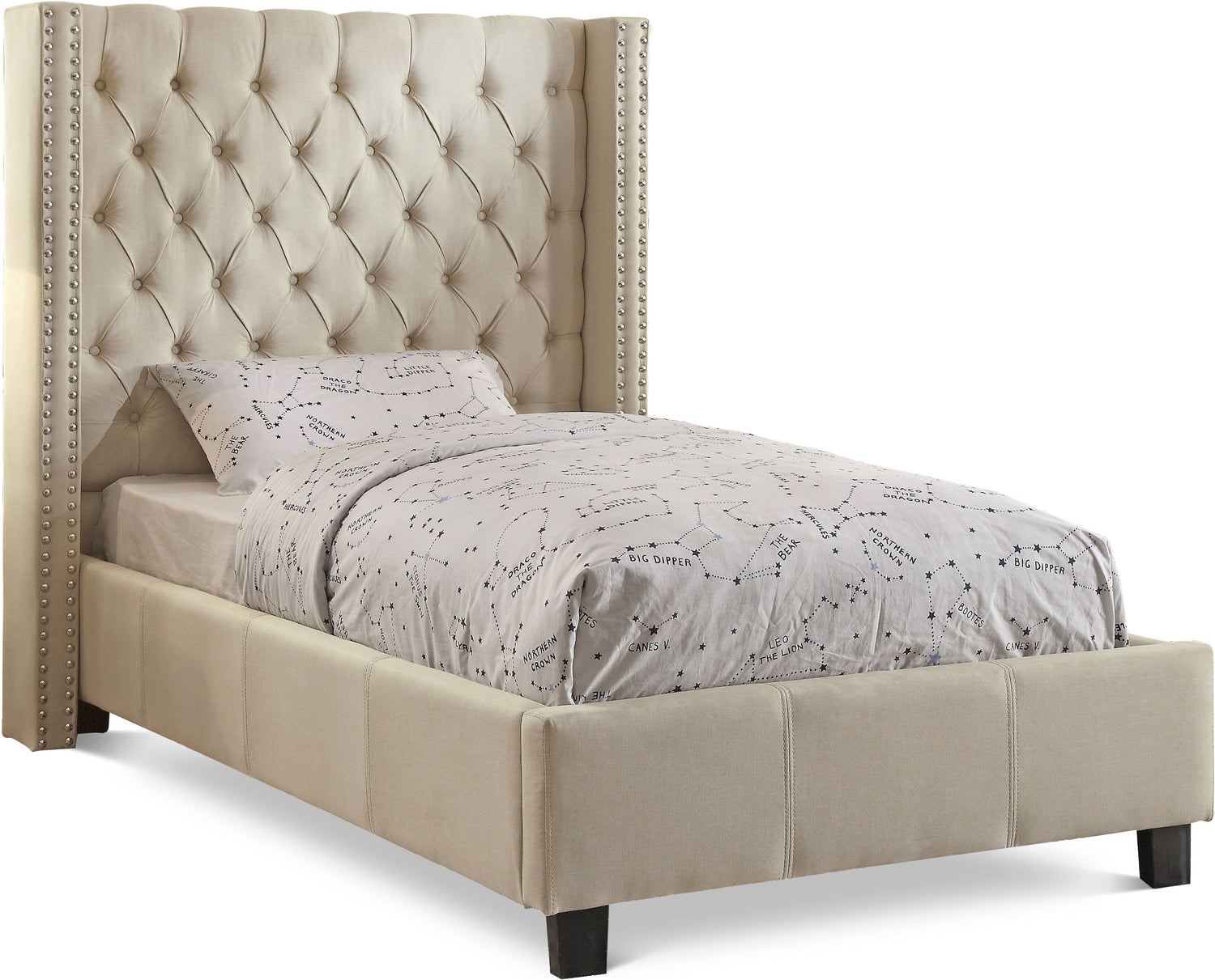 Elegant and eye-catching, the stunning Ashton Bed from Meridian Furniture is the perfect addition to any space. Linen covers the deep tufted design. Strength and beauty is guaranteed with a solid wood frame and legs.