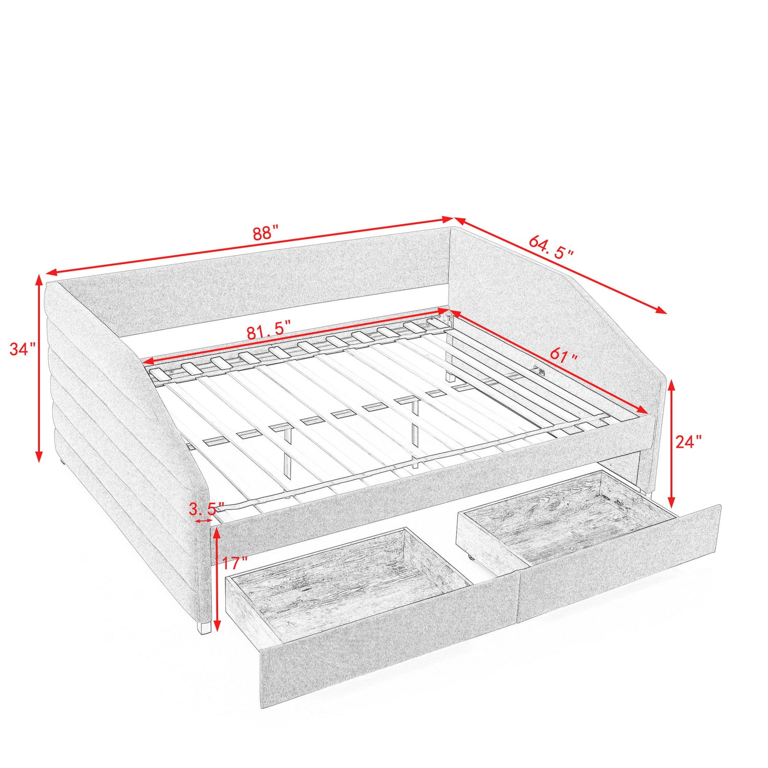 Upholstered Tufted Queen Size Daybed With 2 Drawers Trundle - Gray