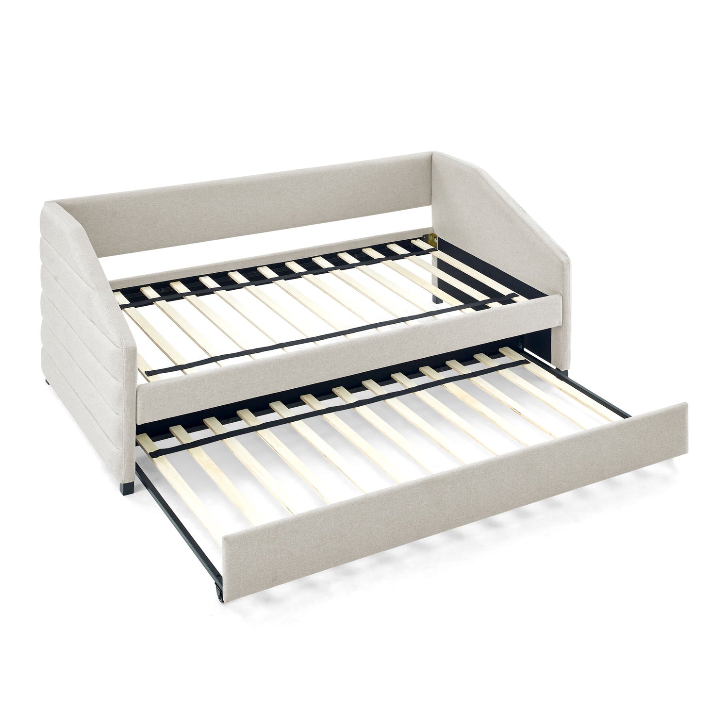 Twin Size Elegant Daybed With Trundle Upholstered Tufted Sofa Bed - Beige