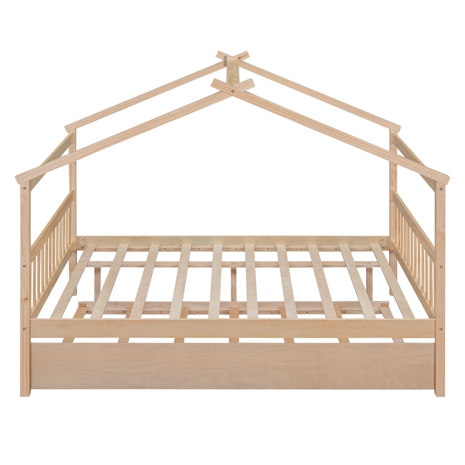 Full Size Classic House Bed With Twin Size Trundle - Natural