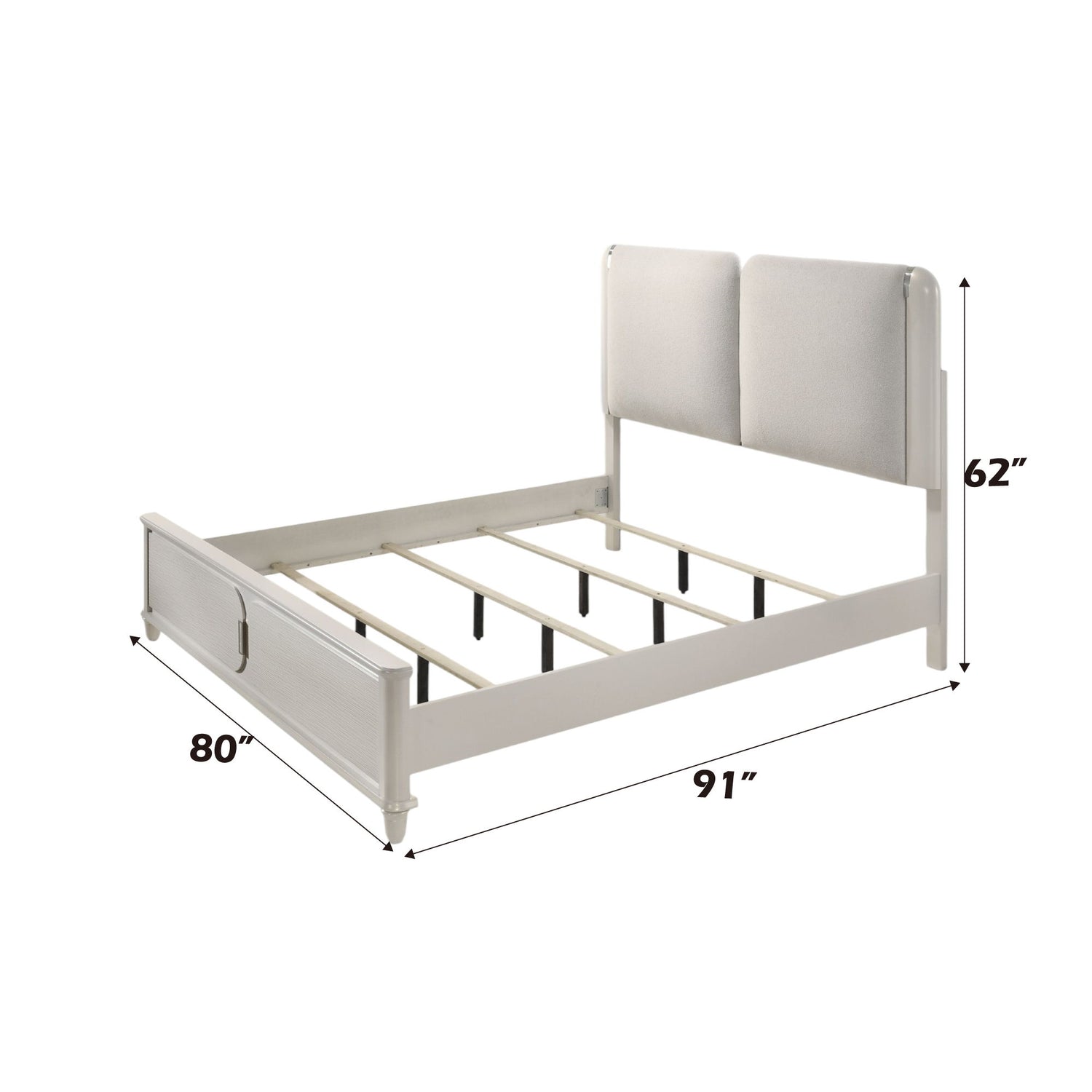 Laveda - Boucle Queen Bed With LED - Light Gray / White