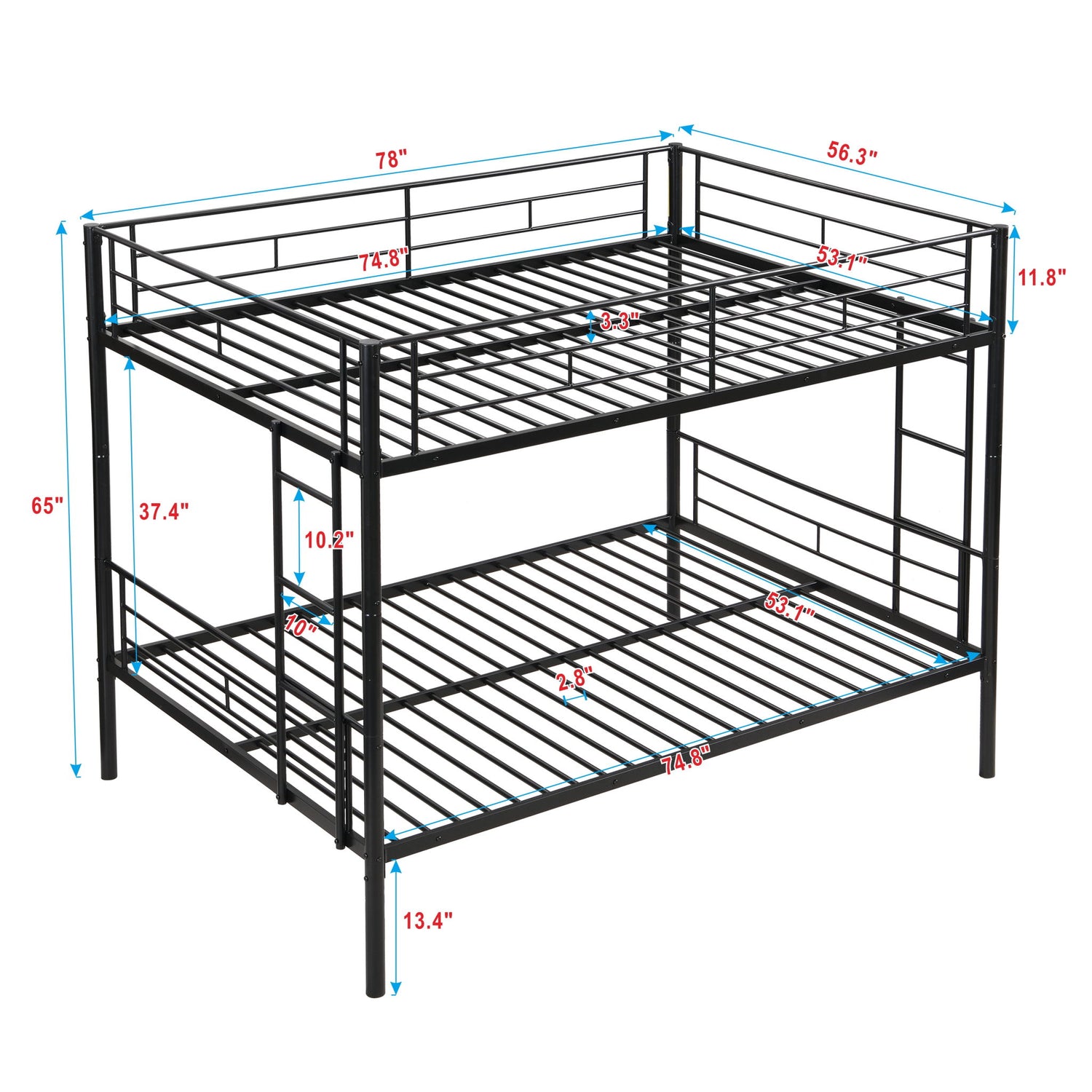 Modern Metal Bunk Bed, Full Over Full, No Box Spring Needed - Black
