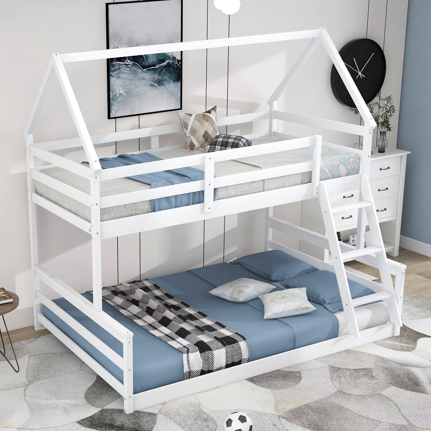 Twin Over Full House Bunk Bed With Built-In Ladder - White