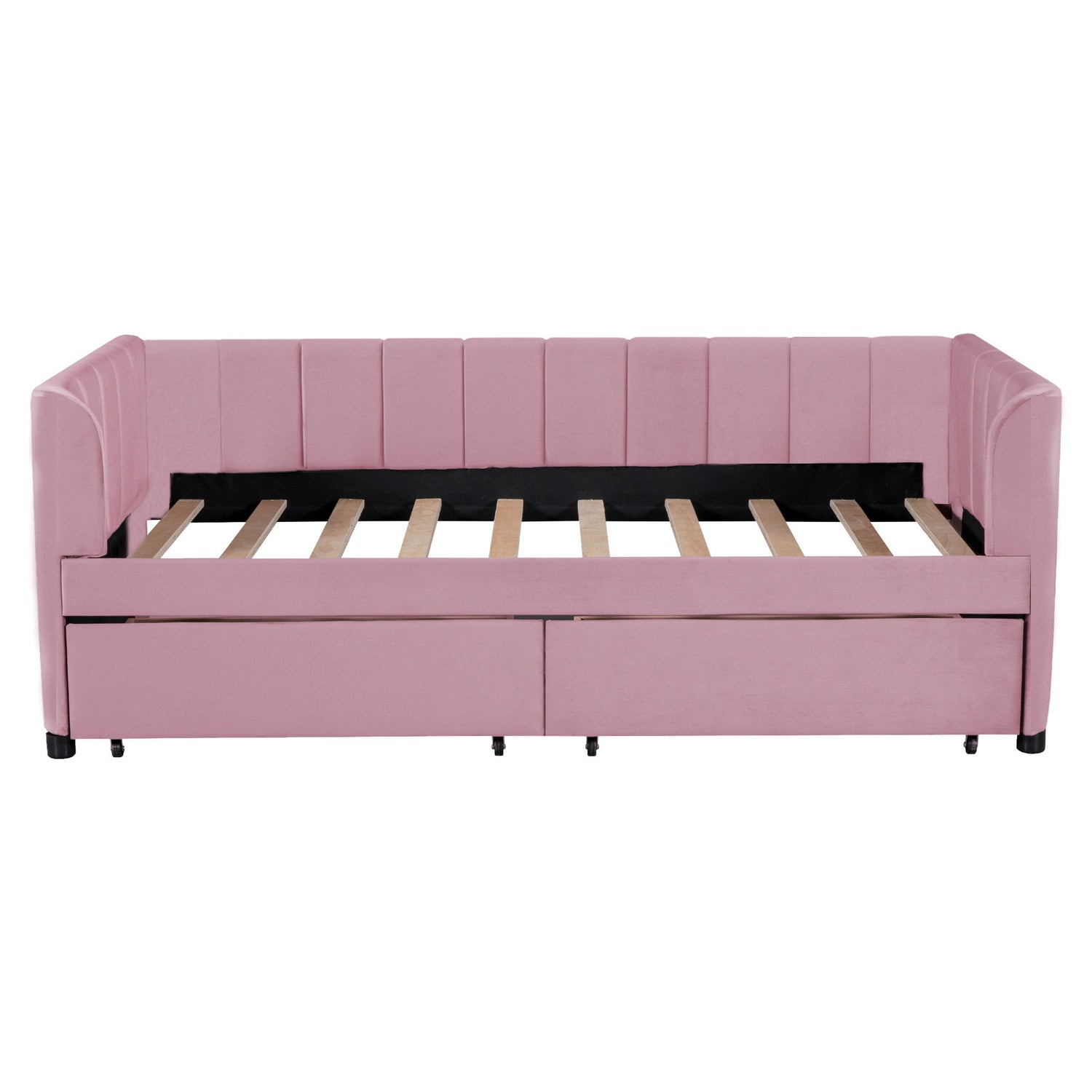 Twin Size Upholstered Daybed With Ergonomic Design Backrest And 2 Drawers - Pink