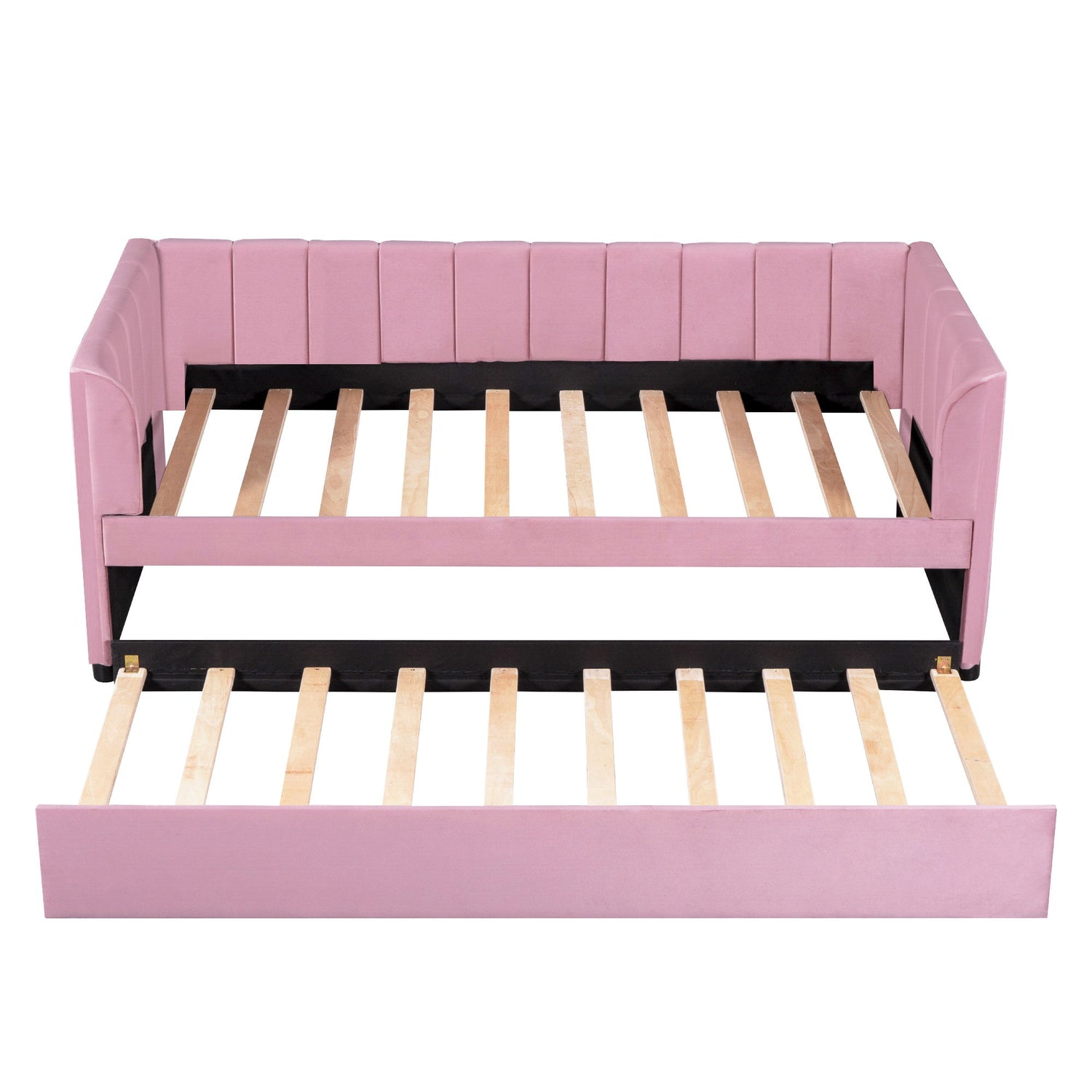 Twin Size Upholstered Daybed With Ergonomic Design Backrest And Trundle - Pink