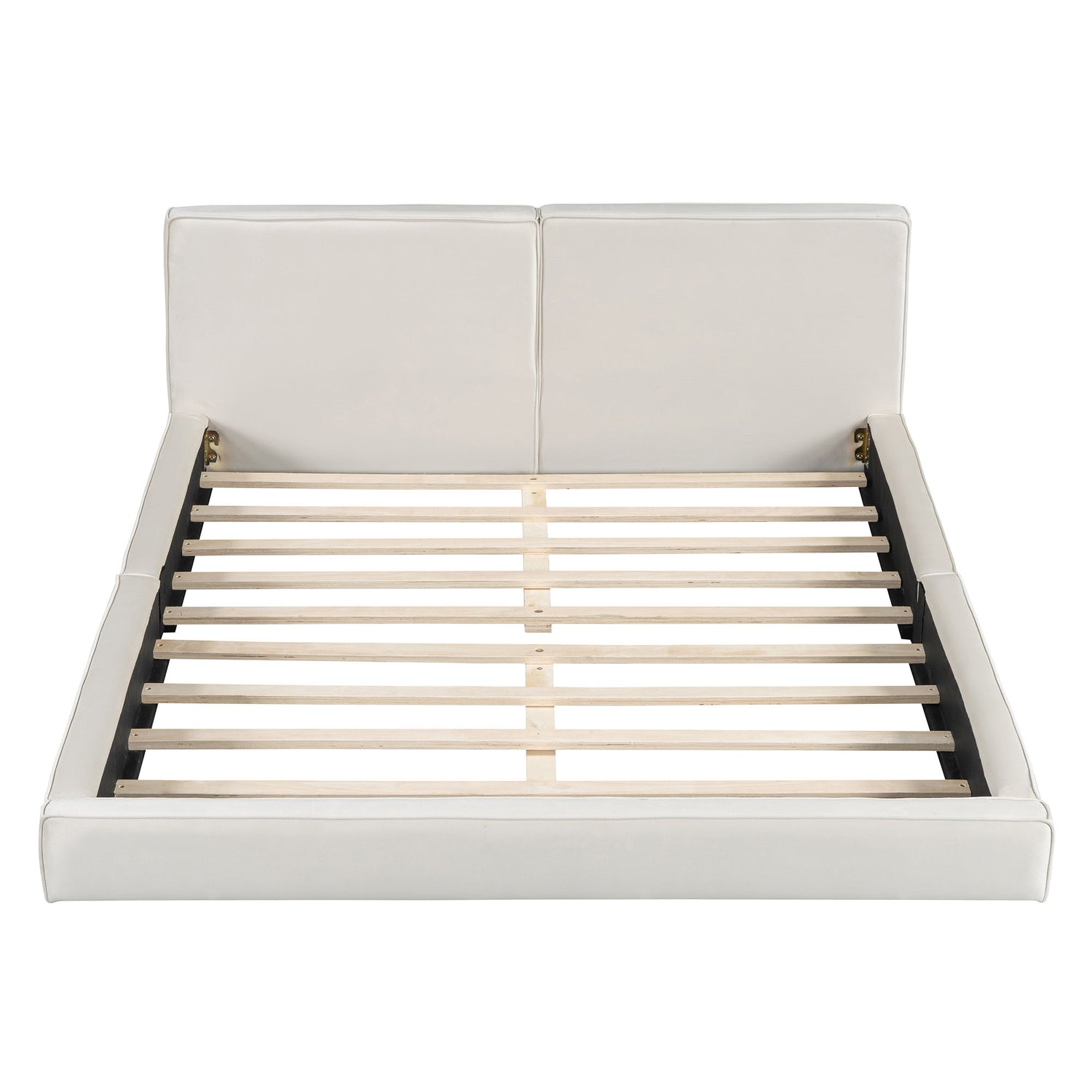 Queen Size Upholstered Platform Bed, Grounded Bed With Solid Frame - Beige