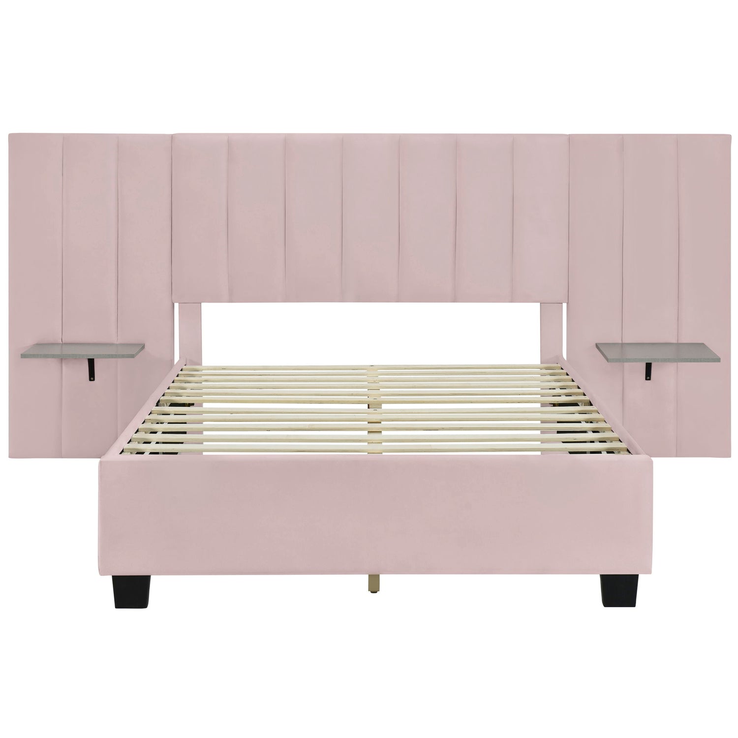 Queen Size Upholstered Platform Bed With Big Headboard - Pink