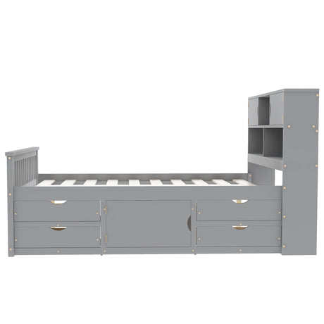 Captain Platform Bed Frame With Bookcase Headboard, 4 Drawers, Storage Shelves