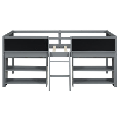 Low Loft Bed With Movable Shelves And Ladder, Decorative Chalkboard Guardrail