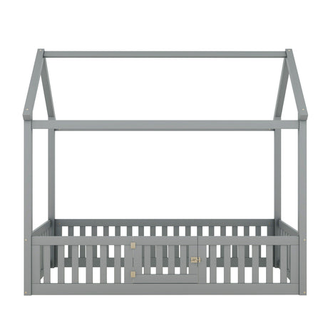 Wood House Bed With Fence And Door