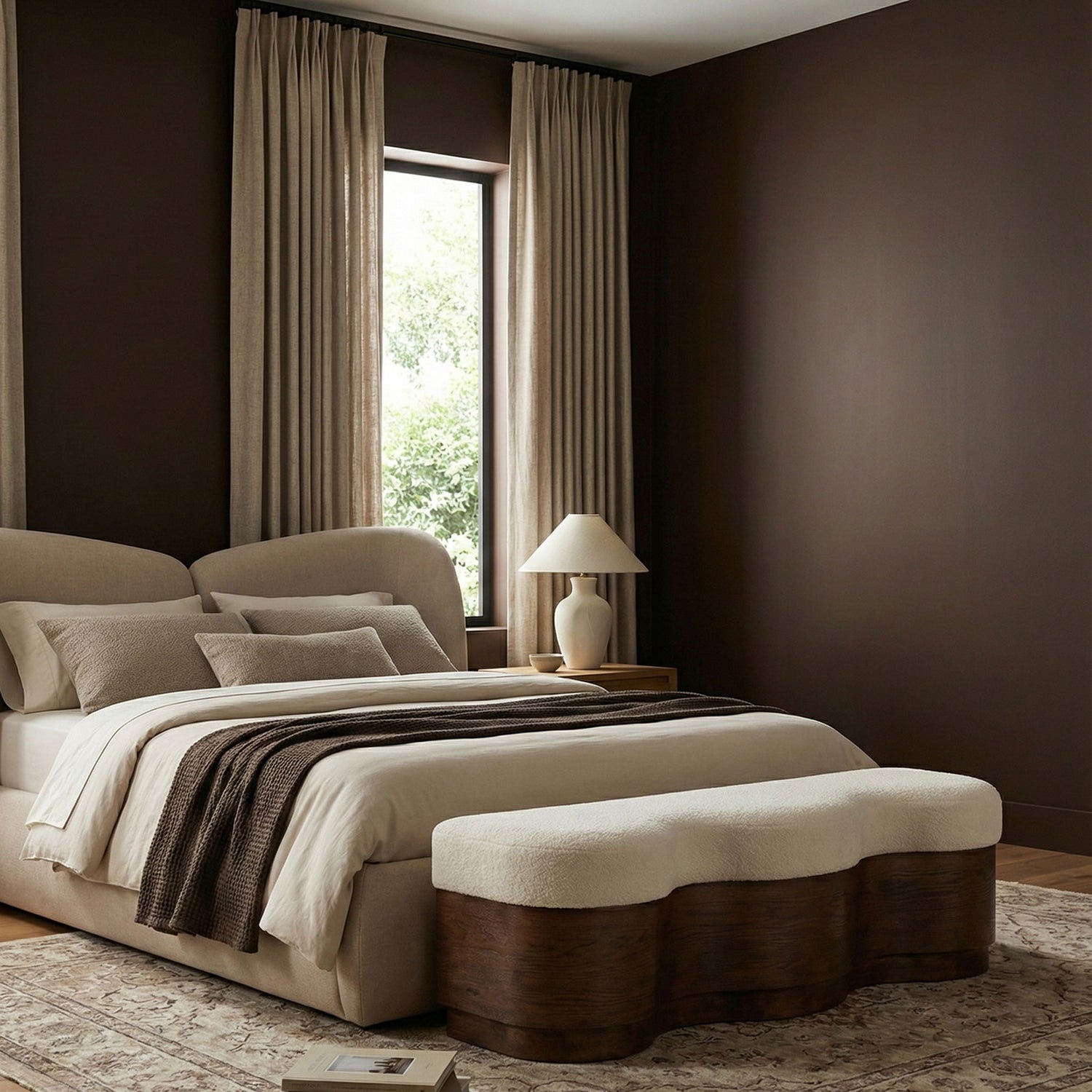 Savoy - Bench With Brown Base - Cream