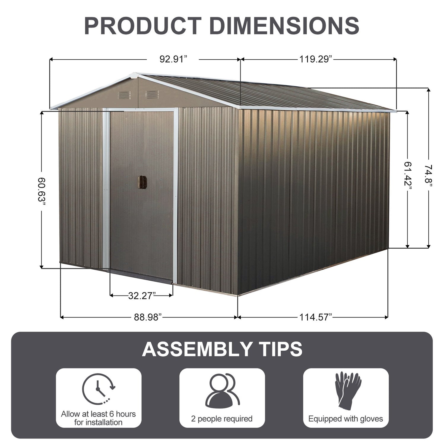 8X10Ft Outdoor Metal Storage Shed - Gray