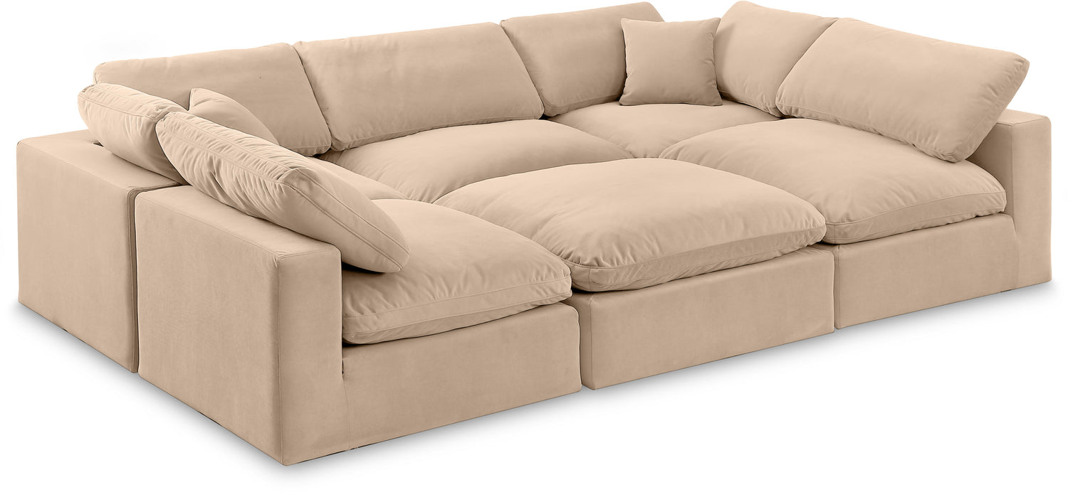 Comfy - 6 Piece Velvet Sectional - Light Beige