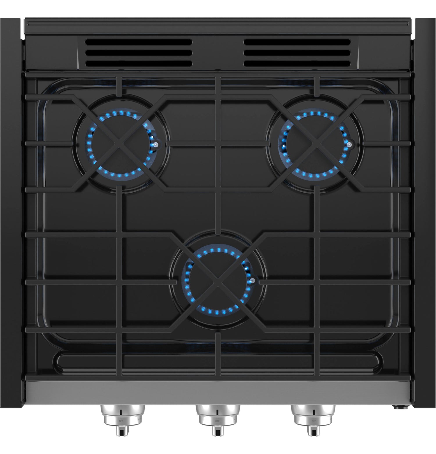 (BR)(B)21" Rangetop(/B)(P)Discover how this 21" RV rangetop fits perfectly into your camper for easy on-the-go cooking(/P)(BR)(B)12V DC Voltage Rating(/B)(P)Conveniently use your 12V DC rangetop with your RV's 12 volt system for power thanks to this hardwired rangetop(/P)(BR)(B)Spark Ignition System(/B)(P)Easily light the burners with push-to-turn knobs that start the flow of propane and create the spark, just like the knobs on a household gas range(/P)(BR)(B)White Backlit Range Knobs(/B)(P)White backlit rangetop knobs can conveniently be turned on and off for easy visibility any time of day(/P)(BR)(B)RV Rangetop with Cast Metal Knobs(/B)(P)The heavy cast metal knobs offer ultimate durability with high end fit, feel and finish of stainless steel(/P)(BR)(B)Edge-to-Edge Grates(/B)(P)Easily move cookware on this seamless surface cooktop with continuous black matte grates(/P)(BR)(B)Three RV Burners(/B)(P)The three-burner RV rangetop has an 8,000-BTU burner in the front and two 6,500-BTU bu