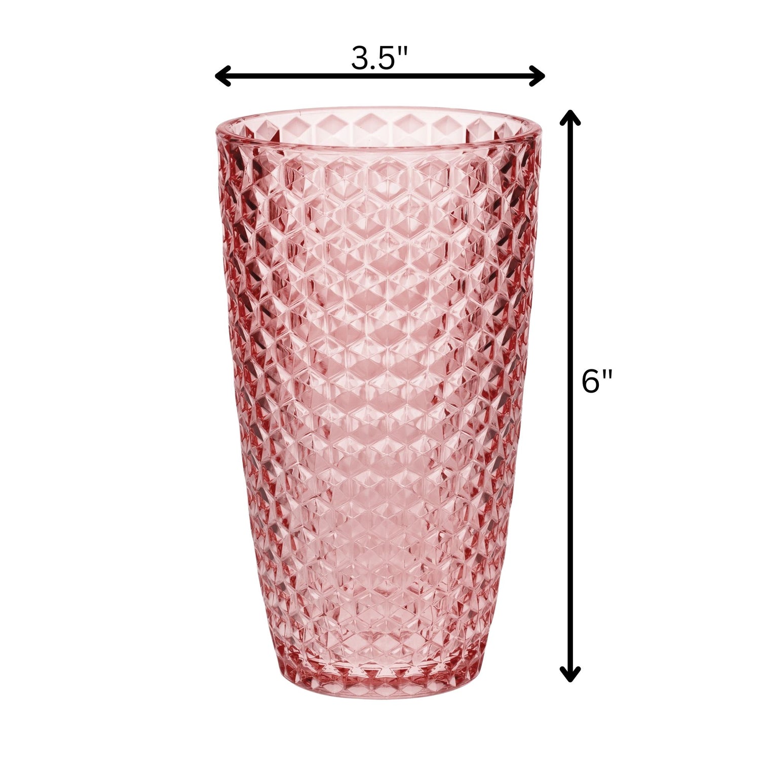Leading Ware Diamond Cut Acrylic Glasses Drinking (Set of 4), 19Oz, Bpa Free - Pink
