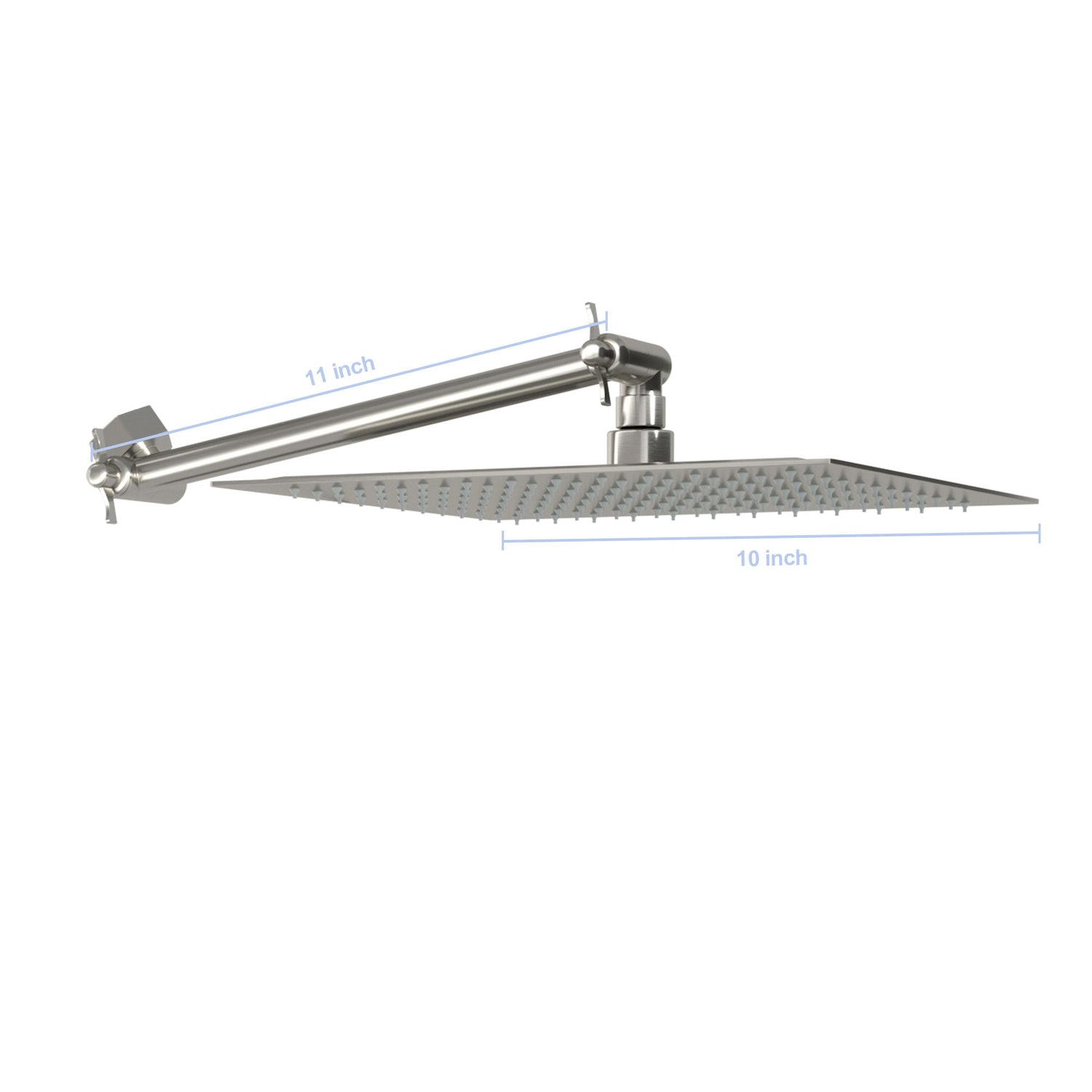Luxury Rain Shower Head With Adjustable Arm, 10" Square, Stainless Steel - Brushed Nickel