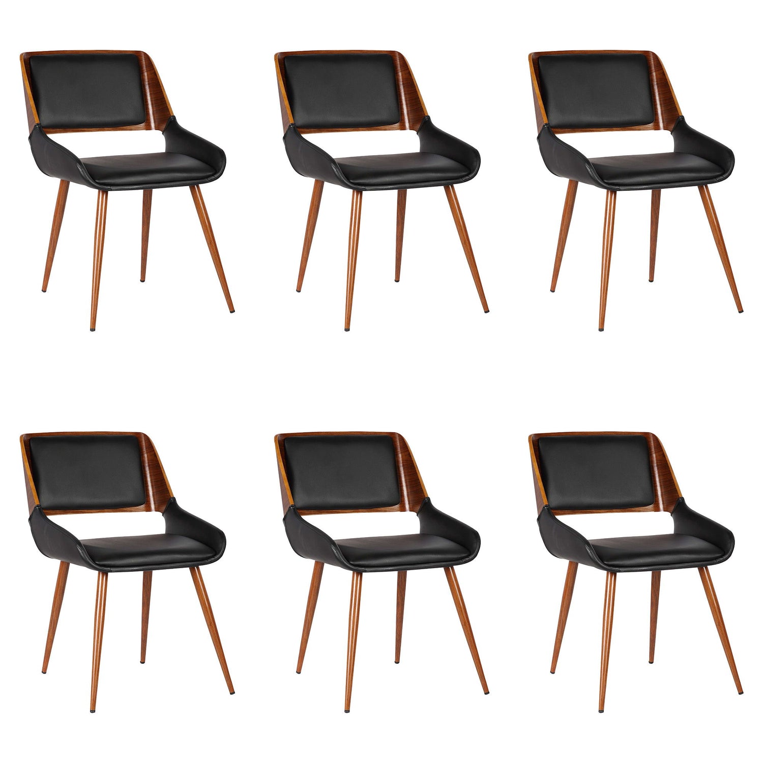 Panda - Mid-Century Dining Chair (Set of 6) - Walnut Finish And Black Faux Leather