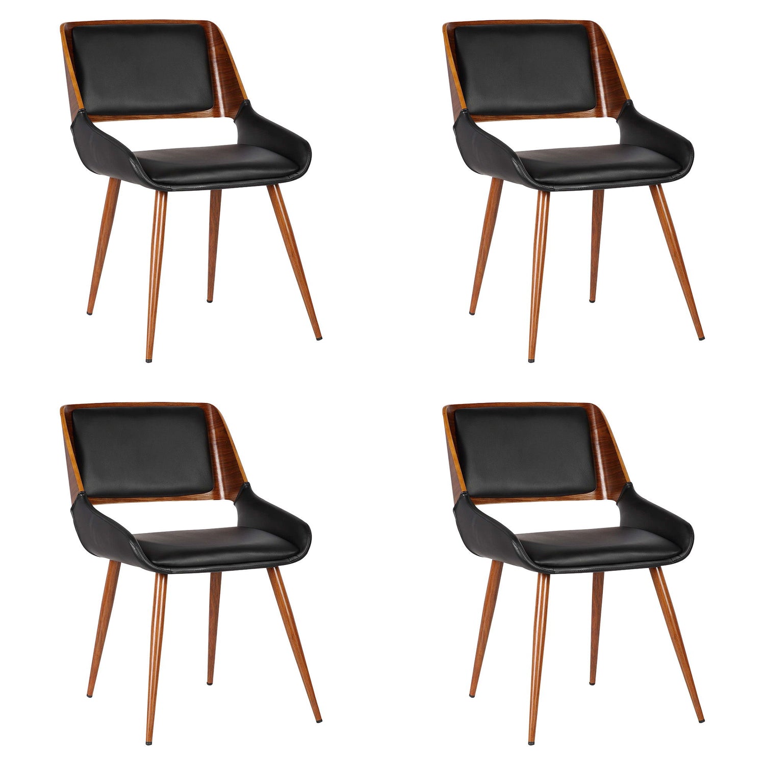 Panda - Mid-Century Dining Chair (Set of 4) - Walnut Finish And Black Faux Leather