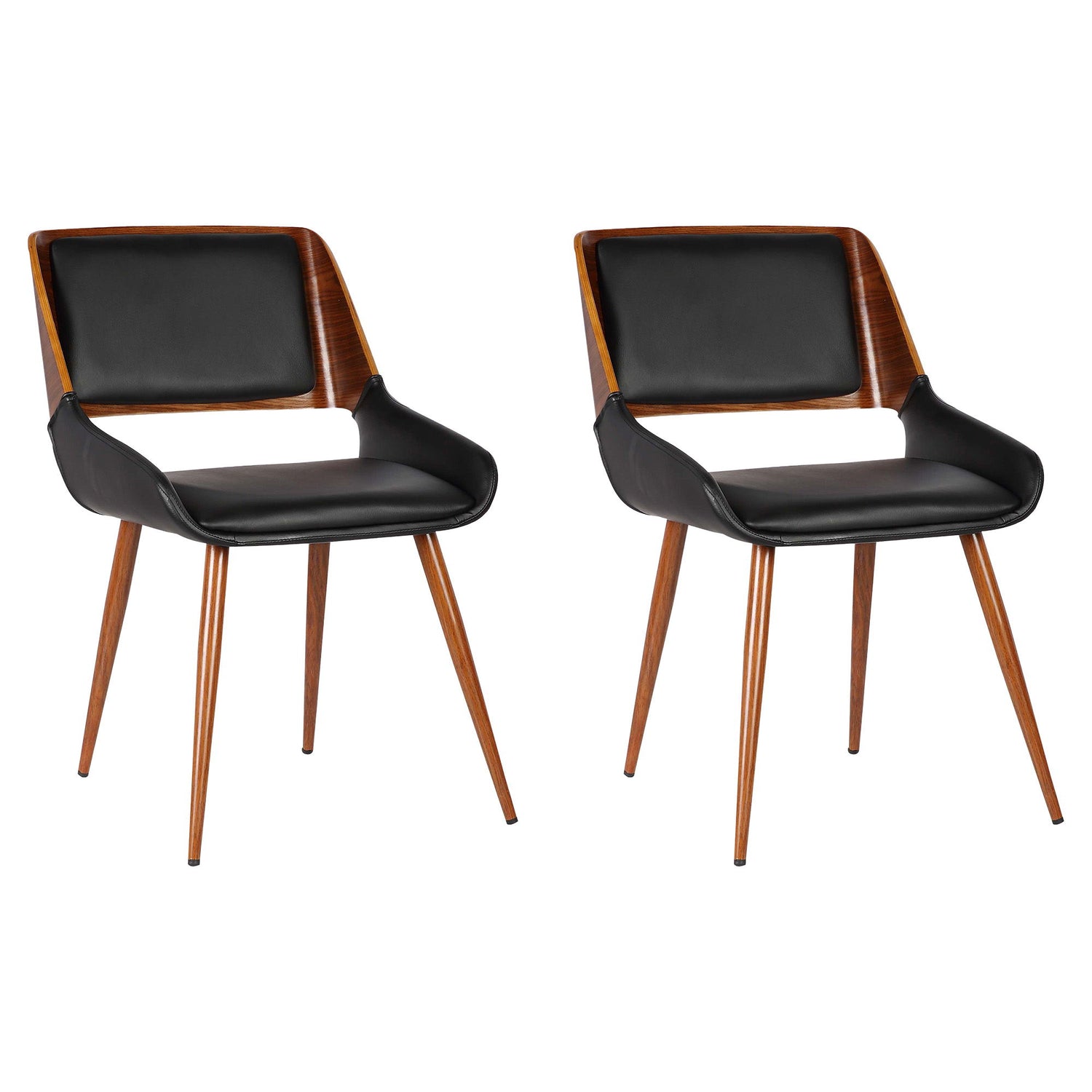 Panda - Mid-Century Dining Chair (Set of 2) - Walnut Finish And Black Faux Leather