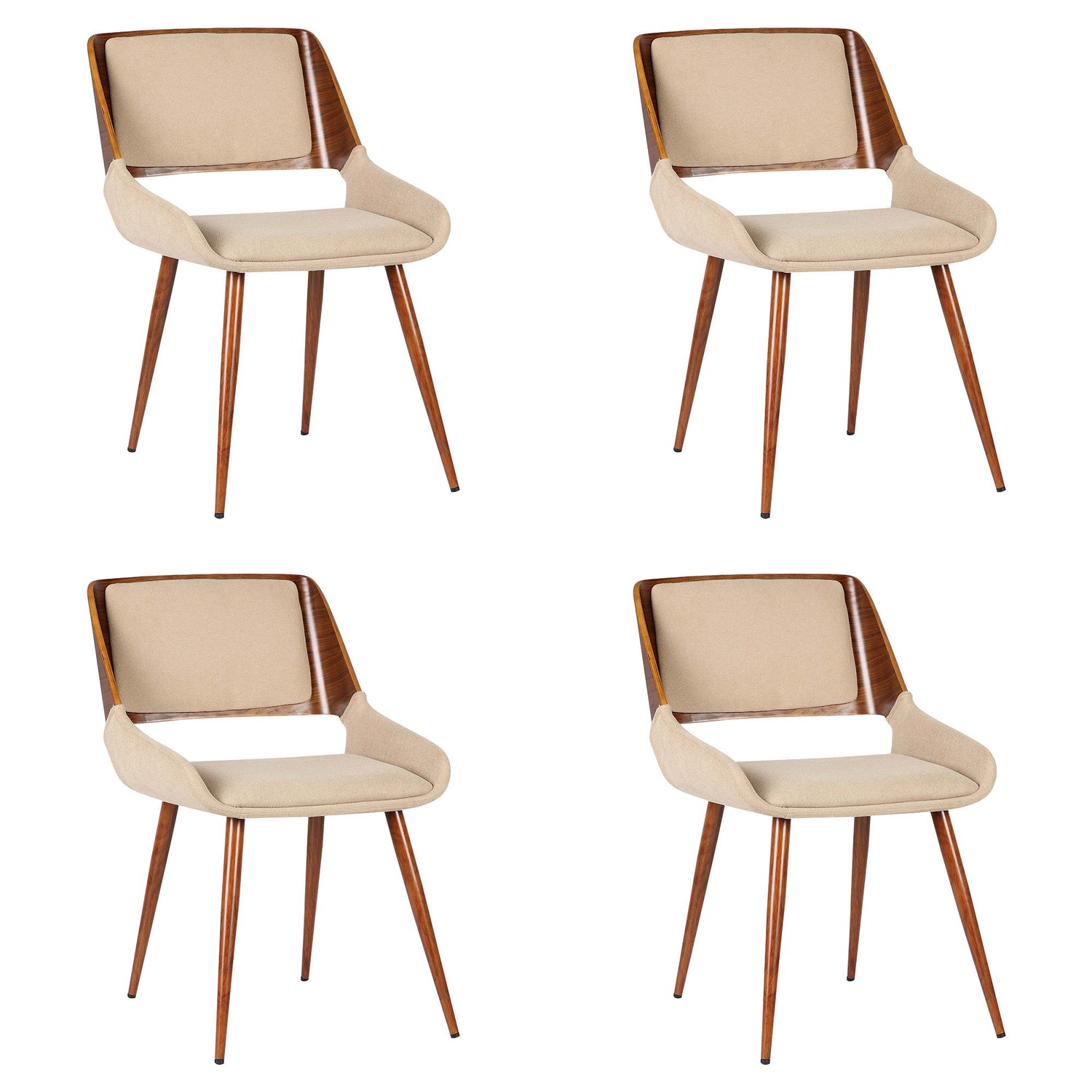 Panda - Mid-Century Dining Chair (Set of 4) - Walnut Finish And Brown Fabric