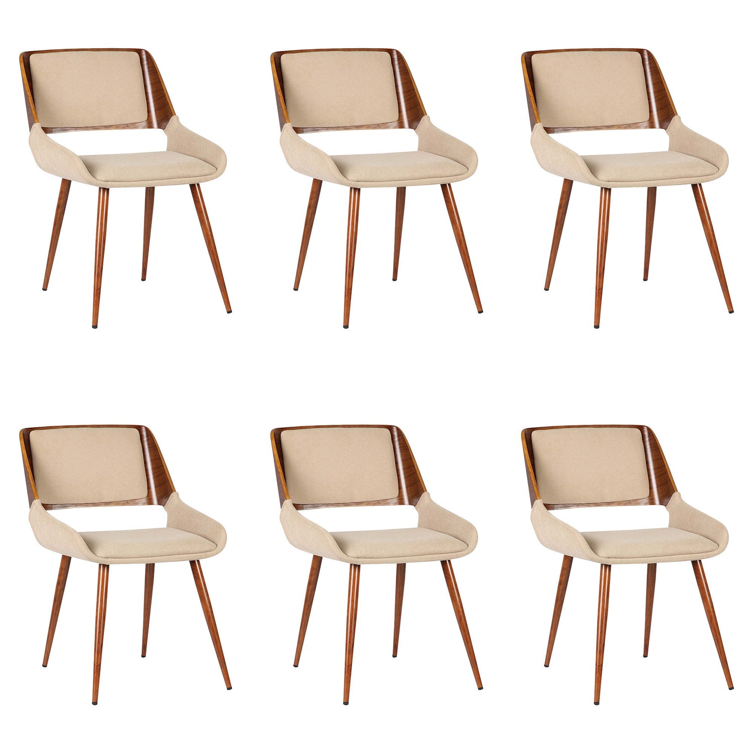 Panda - Mid-Century Dining Chair (Set of 6) - Walnut Finish And Brown Fabric
